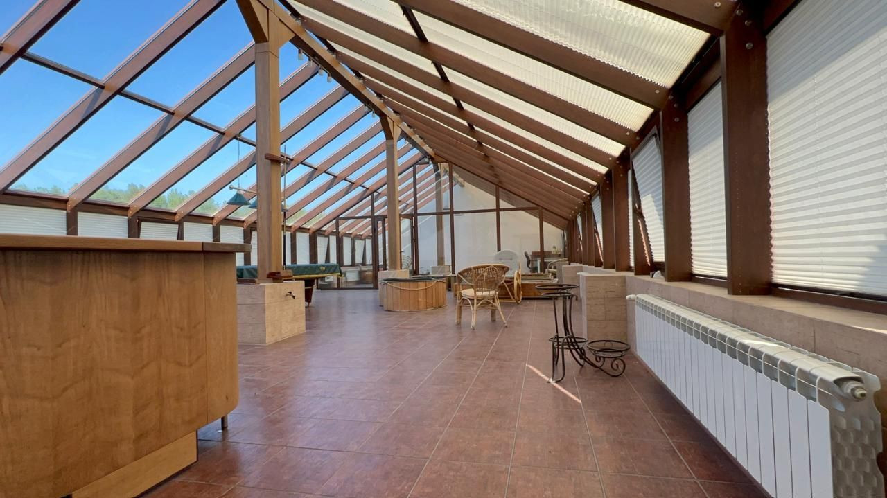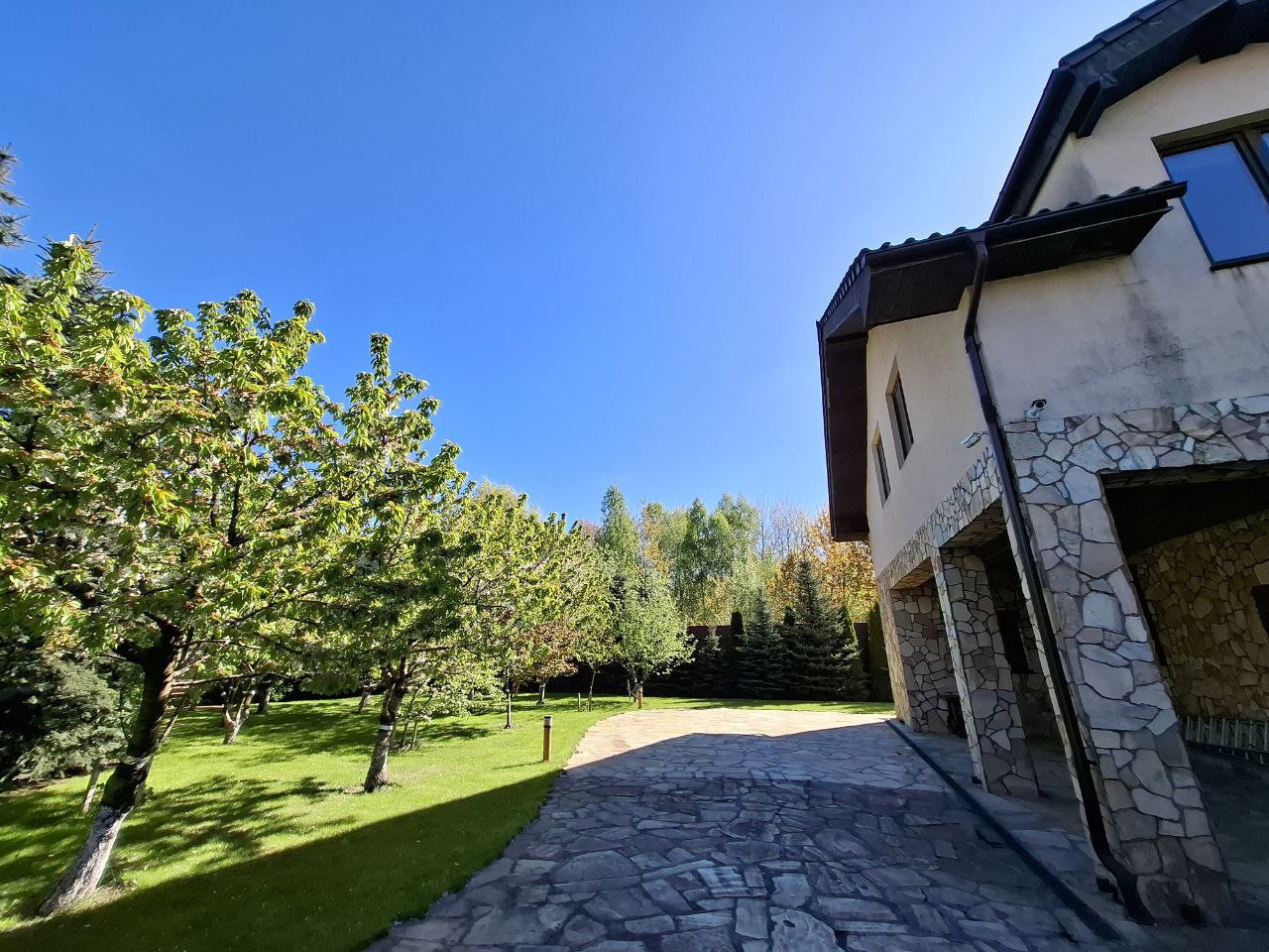 Резиденция представлена ансамблем зданий: ● Жилой дом 270.4 кв.м. выполнен в стиле шале. В отделке использованы натуральные и экологичные материалы, создана атмосфера уюта и тепла. Свежесть, романтика и деревенская экзотика — особенно часто в такой атмосфере нуждаются жители городов. Дом — это не просто стены, это душа, которая хранит тепло и уют.'