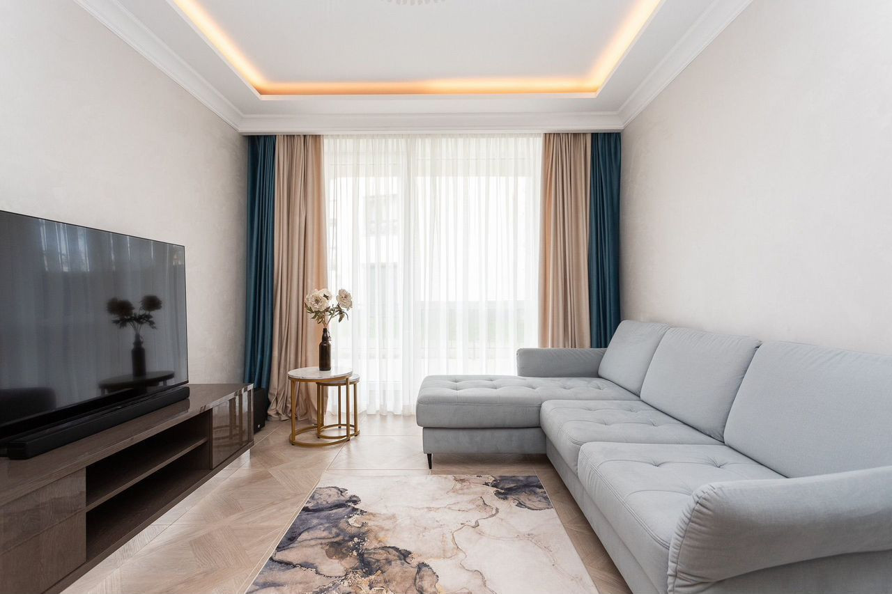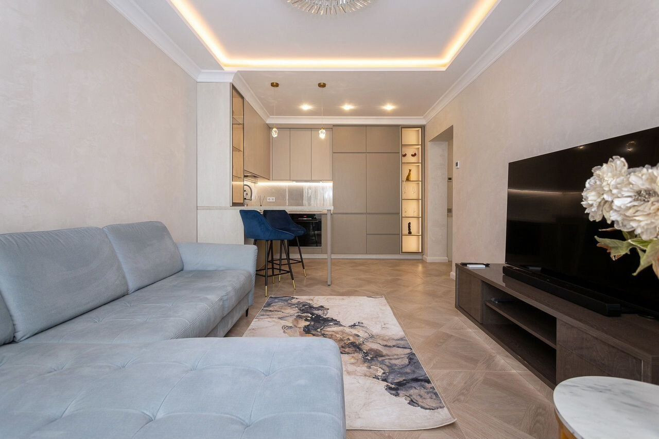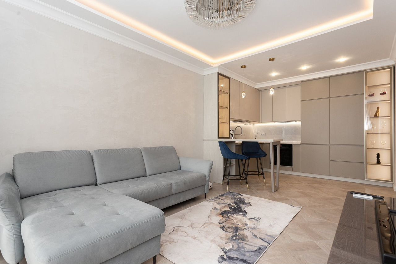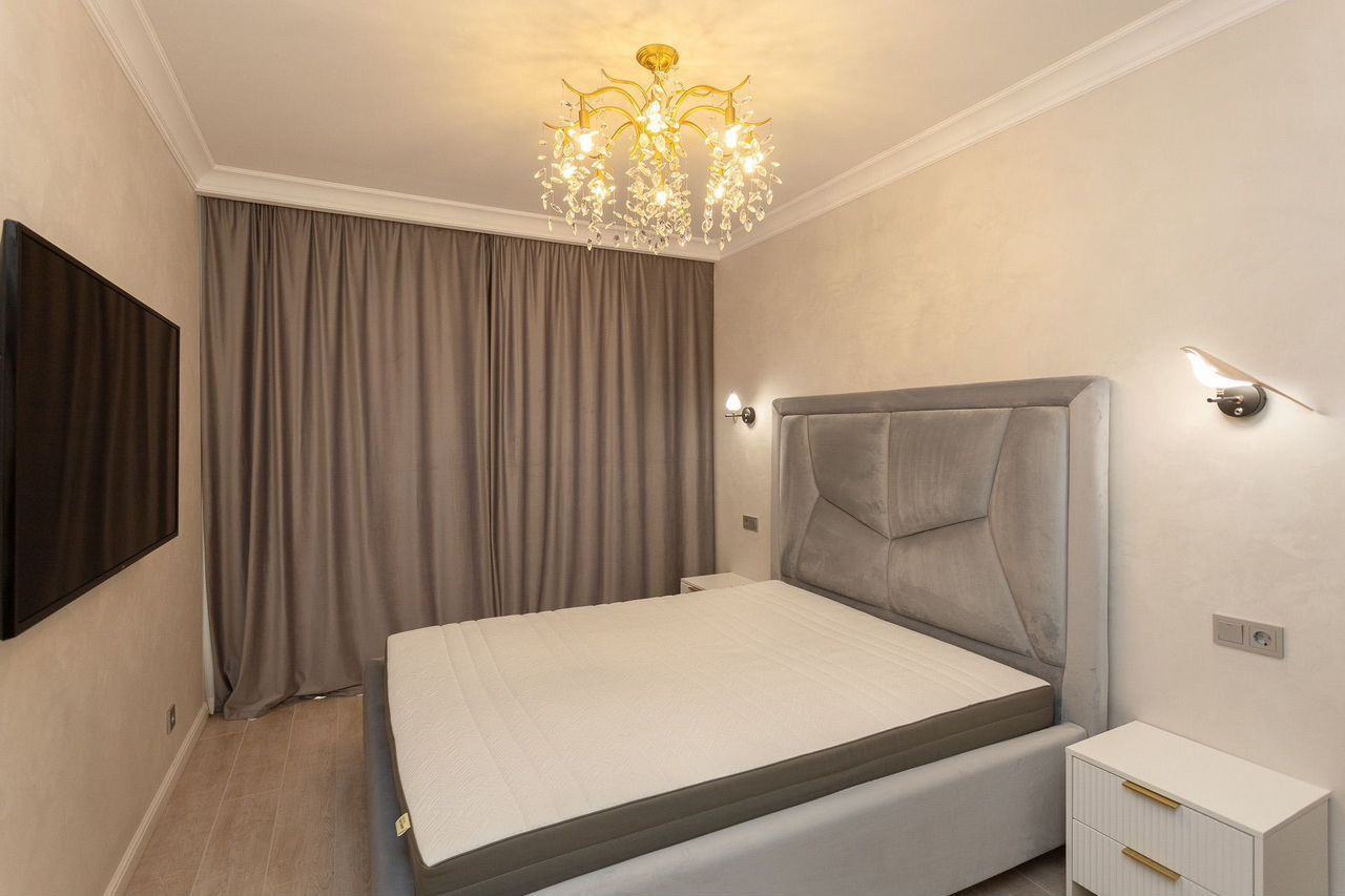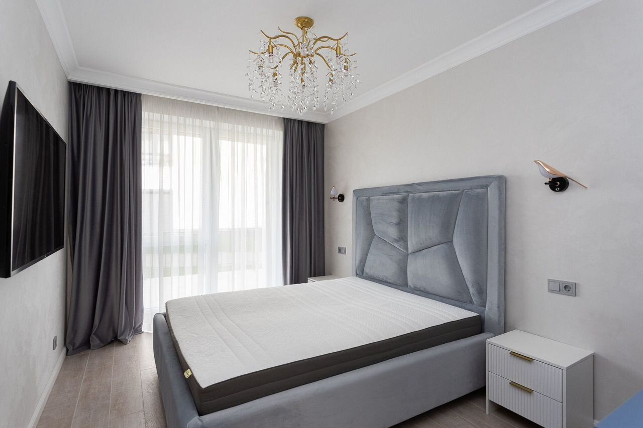 Продается двухкомнатная квартира с большой кухней. Планировка квартиры функциональна и продумана до мелочей, что обеспечивает достойное и комфортное проживание. Общая площадь квартиры 74,4 кв.м, кухня 21 кв.м с выходом на террасу, спальня 12,1 кв.м., гостевая комната 11,4 кв.м с, совмещенный санузел, холл. Автономное отопление. Тепловые датчики климат-контроль, автоматическая раздвижная система штор, периметральное видеонаблюдение с регистратором. В квартире выполнен дизайнерский ремонт в классическом стиле, который уже давно завоевал сердца миллионов людей по всему миру, он никогда не выйдет из моды. Квартира полностью укомплектована мебелью и техникой, есть все для того, чтобы наслаждаться жизнью!