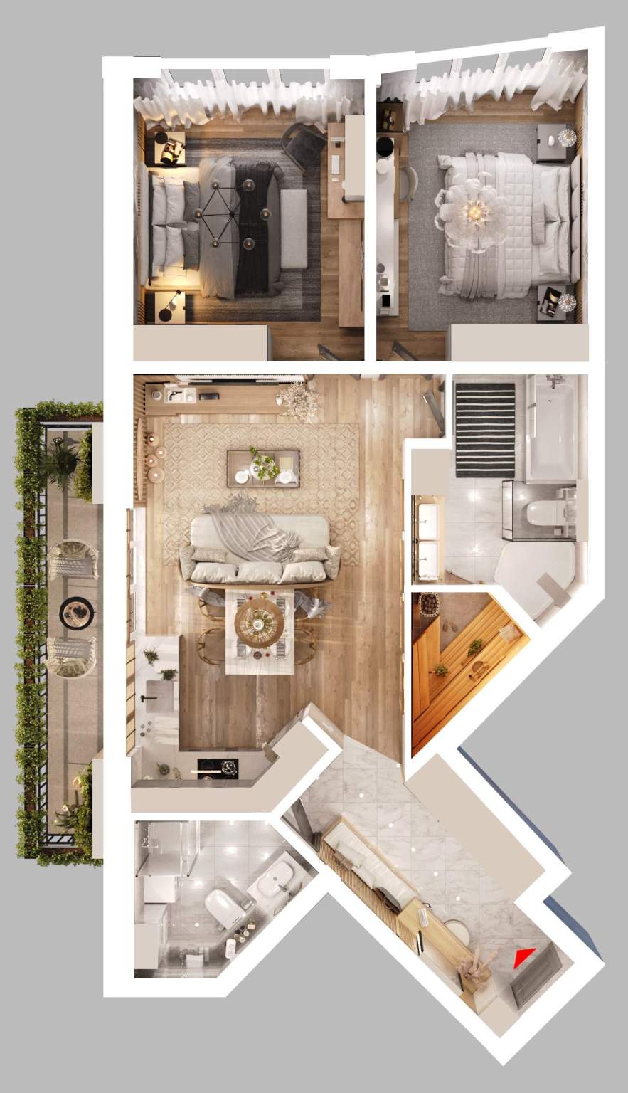 Каждая квартира отличается особыми преимуществами и подготовлена к системе умный дом: - Панорамные окна от потолка до пола- Собственная терраса- Мастер спальня- Гардеробная- Сауна в квартире- Дополнительная, сверхнормативная шумо/гидроизоляция стен и перекрытий- Индивидуальная приточно-вытяжная вентиляция с фильтрацией и рекуперацией