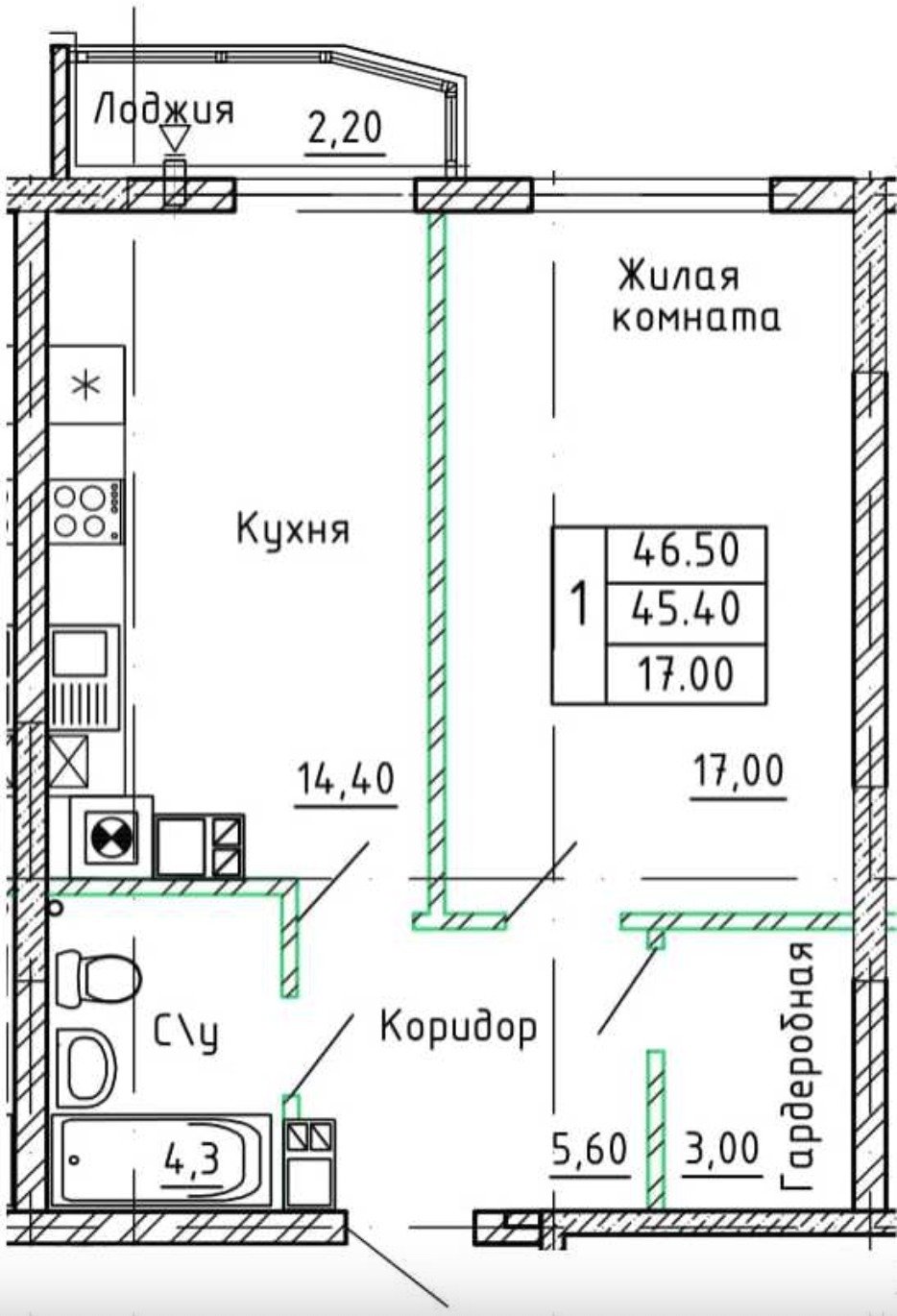 Планировка для удобной жизни: Кухня-гостиная – 14.4 кв. м — удобно готовить и принимать гостей